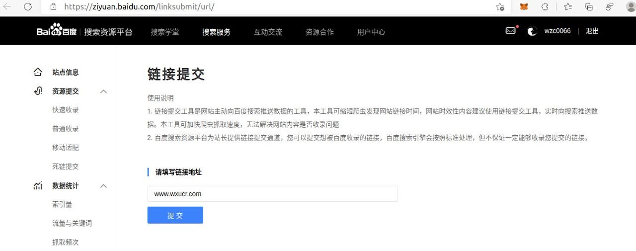 上面對網站的索引規則進行了變動后,也可以通過這種方式主動請求搜索引擎進行同步,如主動向百度提交鏈接: