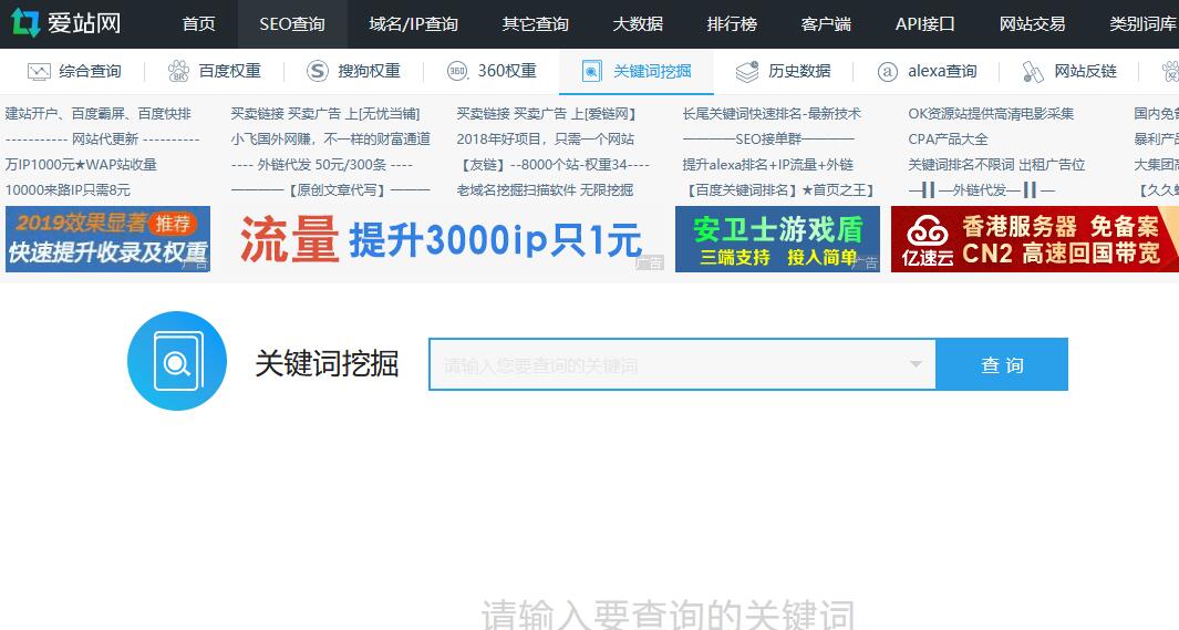 愛站最為老牌的站長(zhǎng)查詢工具,這個(gè)關(guān)鍵詞挖掘工具只是其中的一個(gè)功能,但是網(wǎng)頁(yè)版相對(duì)其他幾個(gè)來(lái)講,詞量有點(diǎn)少,如果喜歡并習(xí)慣用愛站工具的話,推薦下載關(guān)鍵詞挖掘工具的客戶端。
